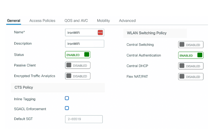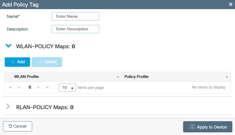 Policy tag настраивается для соединения профиля WLAN с профилем Policy.
