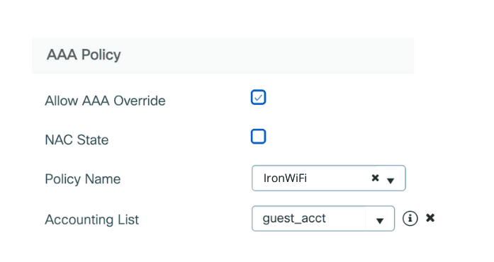11. В разделе AAA Policy (внизу слева) установите флажок рядом с Allow AAA Override и: