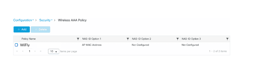 - Перейдите в Configuration > Security > Wireless AAA Policy