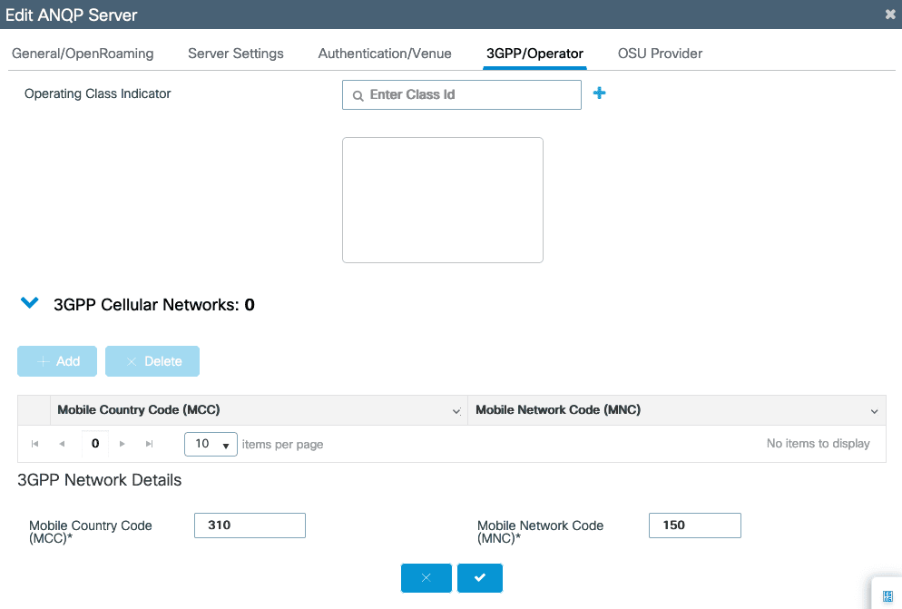 3. Чтобы добавить коды MCC/MNC для аутентификации на основе сотовой связи, выберите меню 3GPP вверху