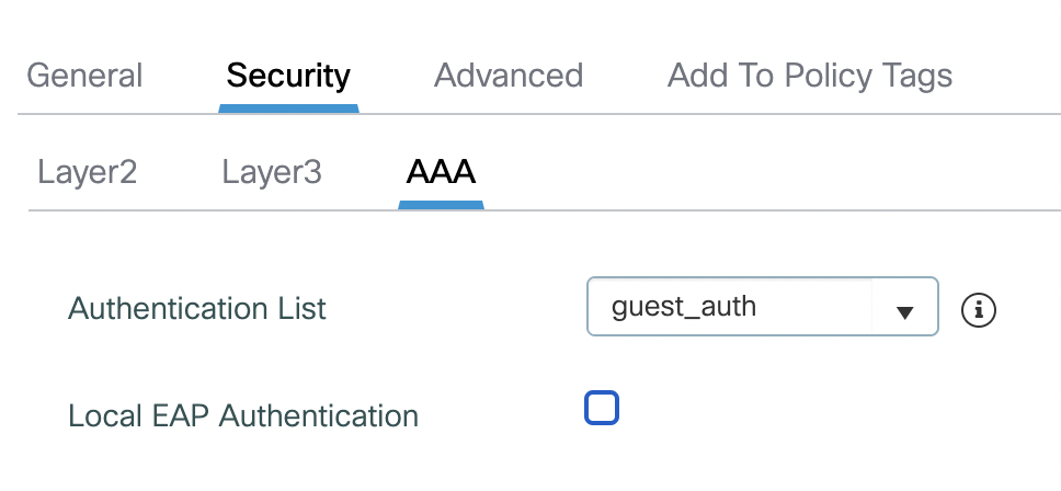 7. Выберите список аутентификации, созданный ранее, из выпадающего меню, «guest_auth«.