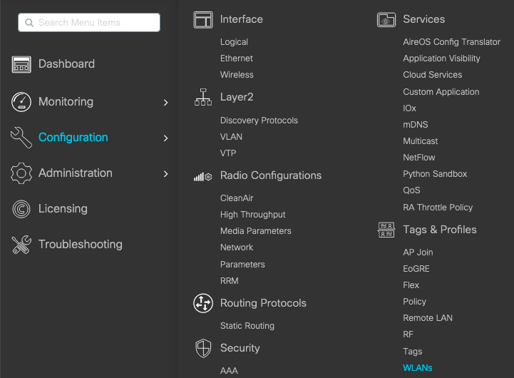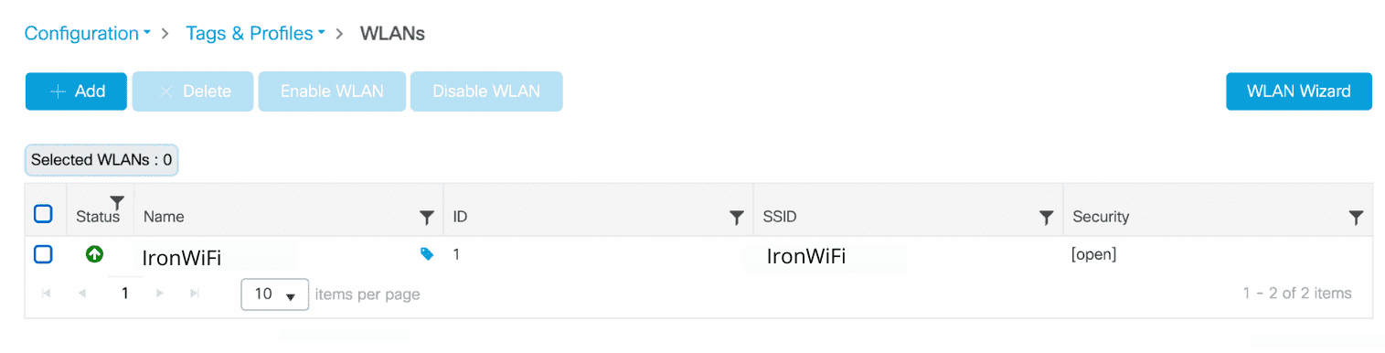 1. Перейдите в Configuration > Tags & Profiles > WLANs.