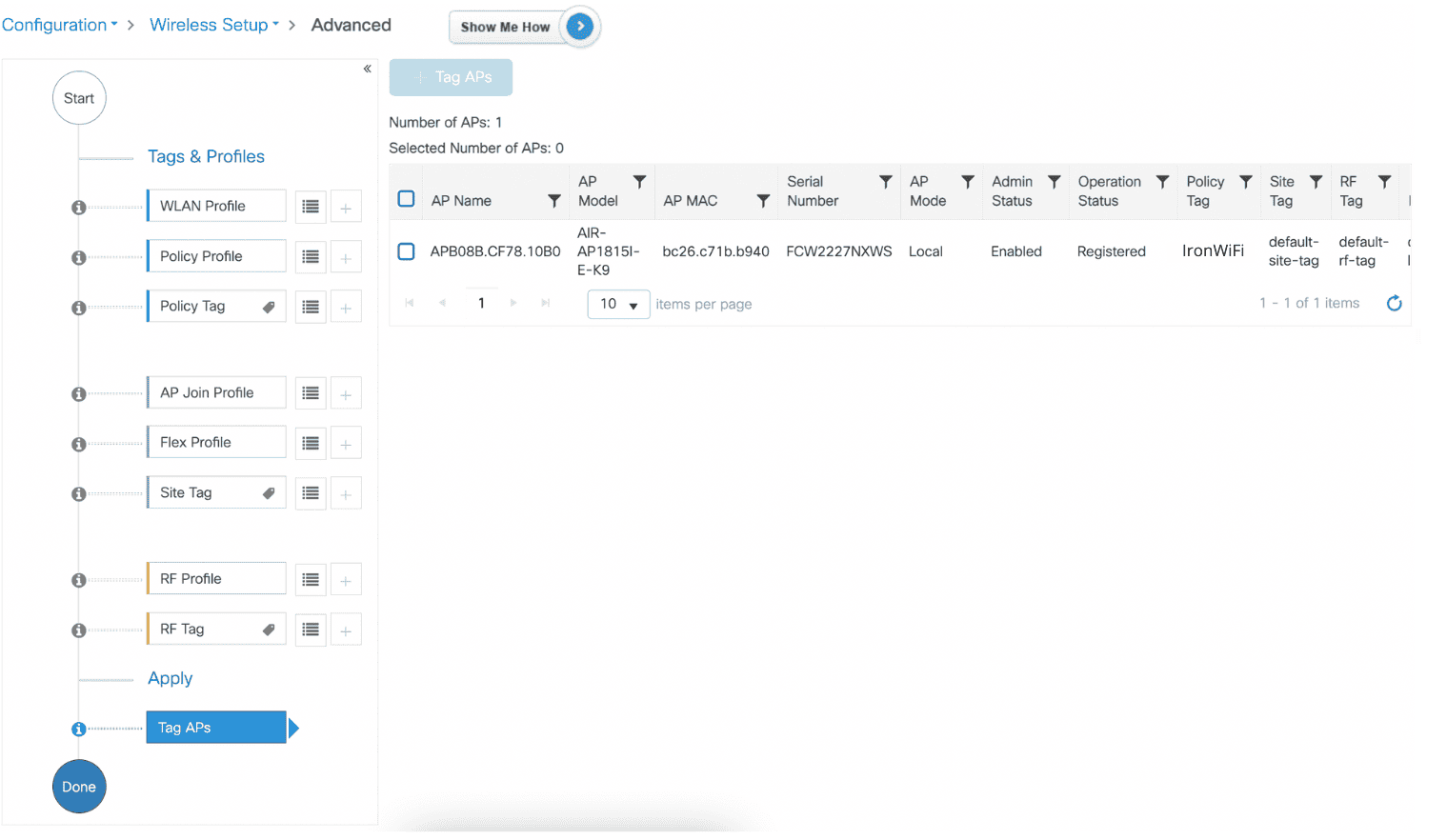 3. Выберите точки доступа, которые нужно пометить, и нажмите +Tag APs вверху страницы