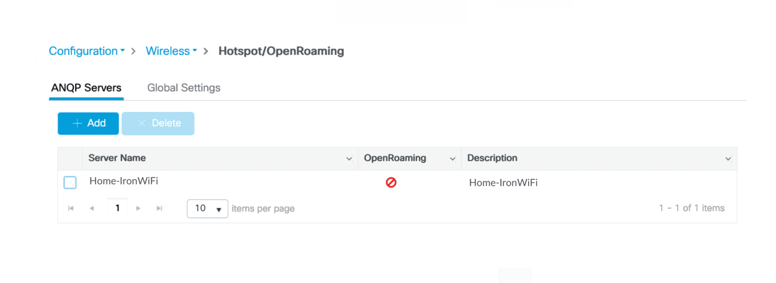 Вы увидите сообщение о том, что конфигурация была сохранена. Вы вернетесь на страницу Hotspot/OpenRoaming, где будет указан добавленный вами ANQP сервер.
