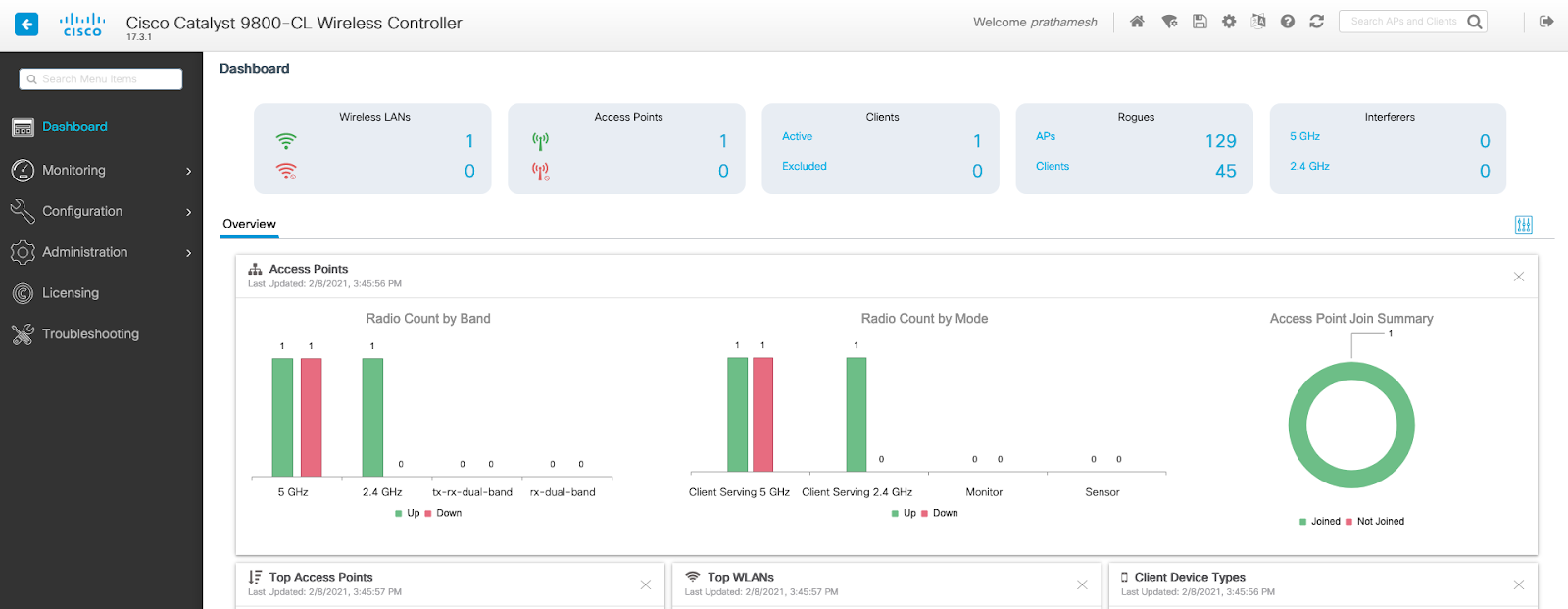 Появится панель управления Cisco Catalyst 9800-CL Wireless Controller. Ваши точки доступа будут отображены.