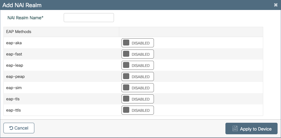 9. Нажмите Apply to Device внизу диалогового окна Add NAI Realm.