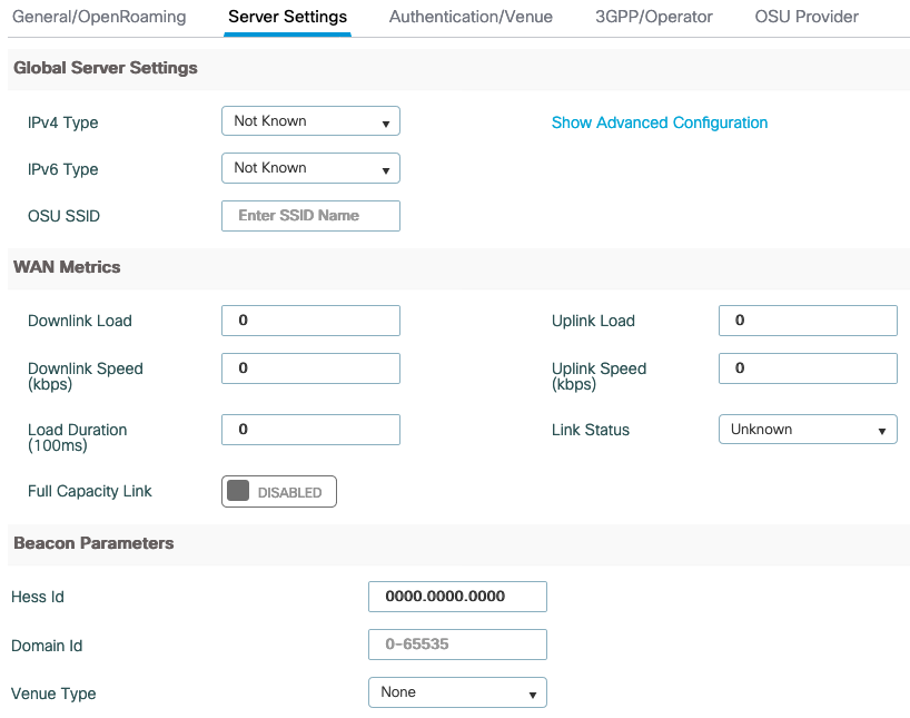 1. Оставаясь в диалоговом окне Add New ANQP Server, выберите Server Settings вверху.