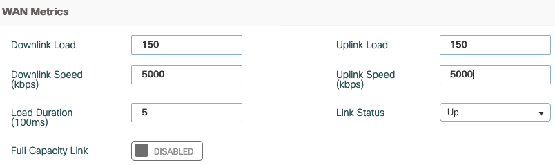 2. В секции WAN Metrics установите параметры, соответствующие вашей сети. Не оставляйте эти значения пустыми.